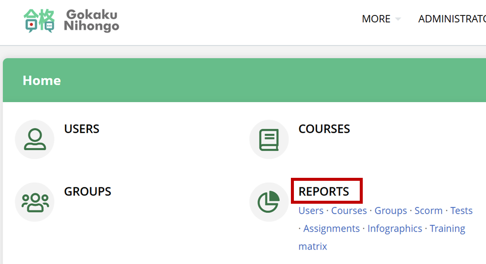 1) アドミニストレータとしてログインし、レポート画面を開きます。