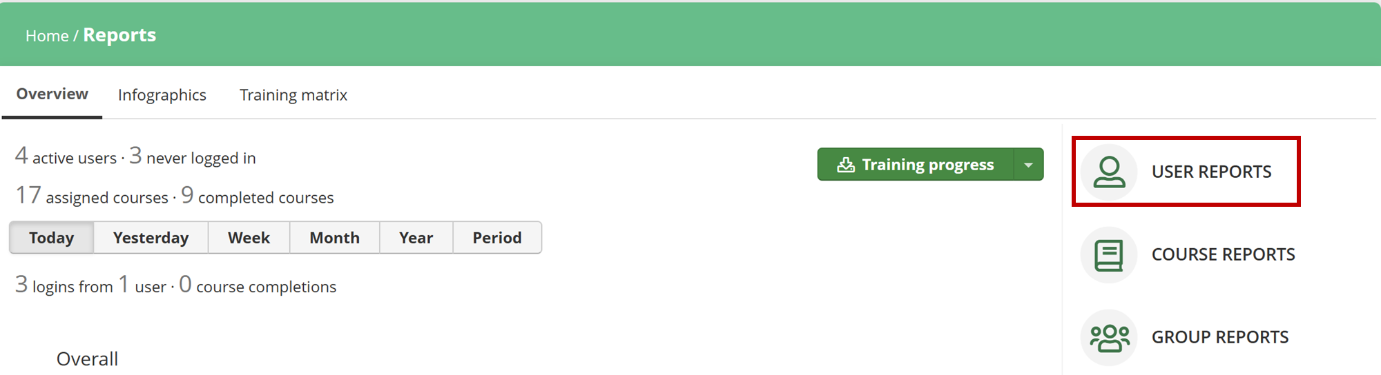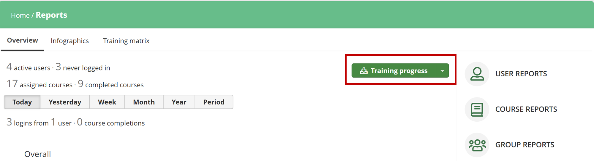 5) 「チーム」「クラス」を同時にソートするには、[Training Progress]をクリックしてレポートをダウンロードする必要があります。