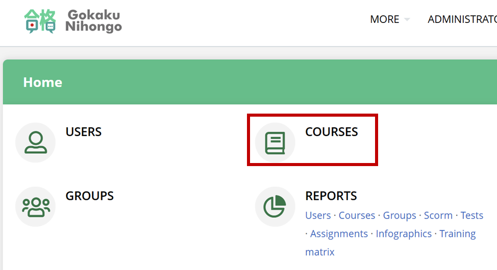 アドミニストレータは、合格日本語上で生徒に模擬テストや各種コースを直接割り当てできます。